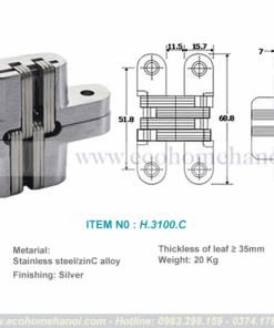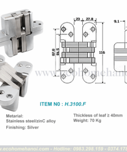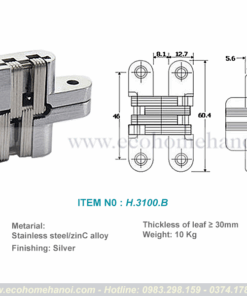 * Bản lề giấu khuôn H.3100 – Lựa chọn chuyên nghiệp cho thiết kế nội thất thông minh, hiện đại, tối ưu độ bền và tính thẩm mỹ.