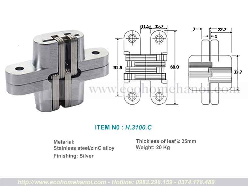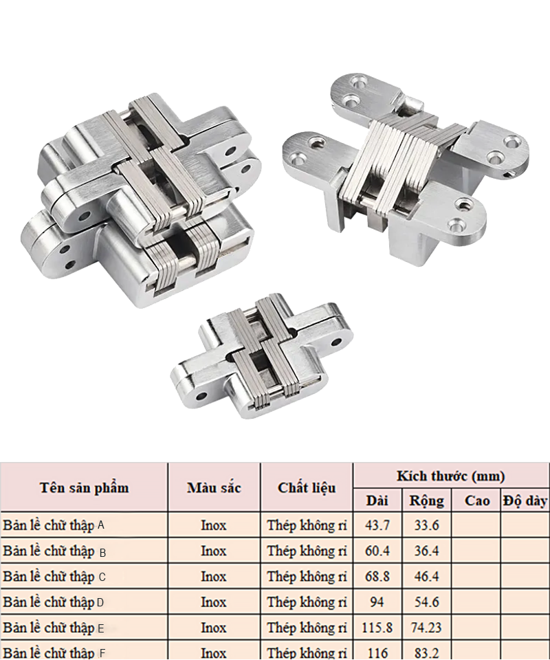 Bản lề chữ thập H.3100 – còn gọi là bản lề giấu khuôn – là dòng bản lề chuyên dụng cho các thiết kế nội thất yêu cầu khả năng mở rộng hoàn toàn và giấu kín chi tiết kỹ thuật. Với góc mở lên tới 180°, sản phẩm phù hợp cho cửa gỗ, bàn gập, cánh tủ lật, giúp thao tác đóng/mở nhẹ nhàng và linh hoạt.