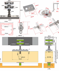 - Ray treo: Chất liệu hợp kim nhôm, chiều dài tiêu chuẩn 3000mm, rông: 55mm – tải trong 300Kg – Chức năng chính dẫn hướng chịu lực cho bánh xe treo