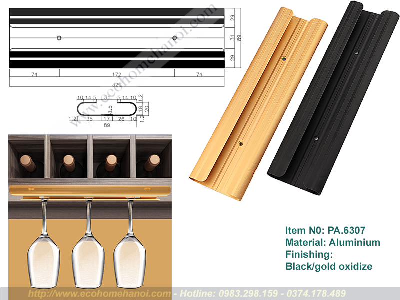 Giá treo ly rượu PA6307 là lựa chọn tuyệt vời cho những không gian thưởng thức rượu sang trọng. Với chất liệu hợp kim nhôm mạ oxy hóa, sản phẩm không chỉ bền bỉ, chống ăn mòn mà còn có độ thẩm mỹ cao, dễ dàng tạo điểm nhấn cho bất kỳ không gian nào. Màu sắc đen thanh lịch hoặc vàng champagne sang trọng giúp tôn lên vẻ đẹp của những chiếc ly rượu, phù hợp cho tủ rượu, quầy bar, phòng khách hay kệ trưng bày.