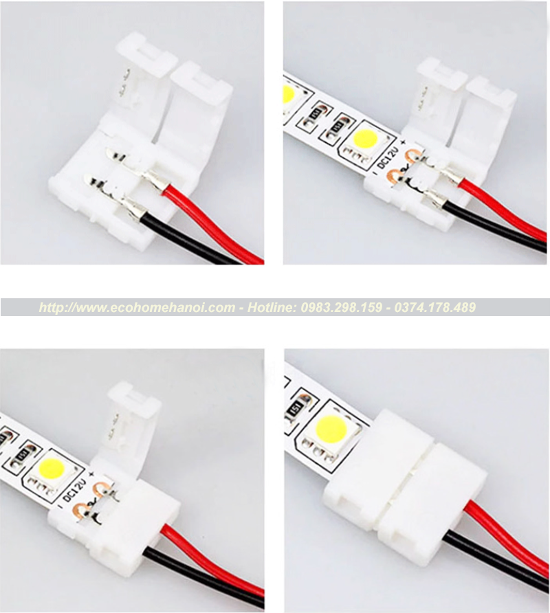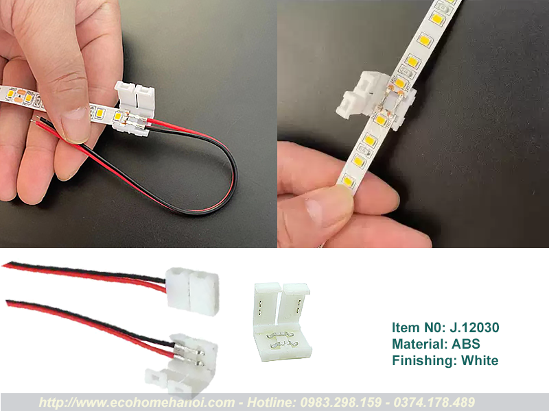 Dùng để nối dây đèn LED hoặc kẹp đầu dây LED, phù hợp với dòng LED dây dán SMD 2835. Thiết kế mỏng, nhỏ gọn dễ dàng đặt vừa trong máng nhôm profile, đảm bảo tính thẩm mỹ cho công trình.