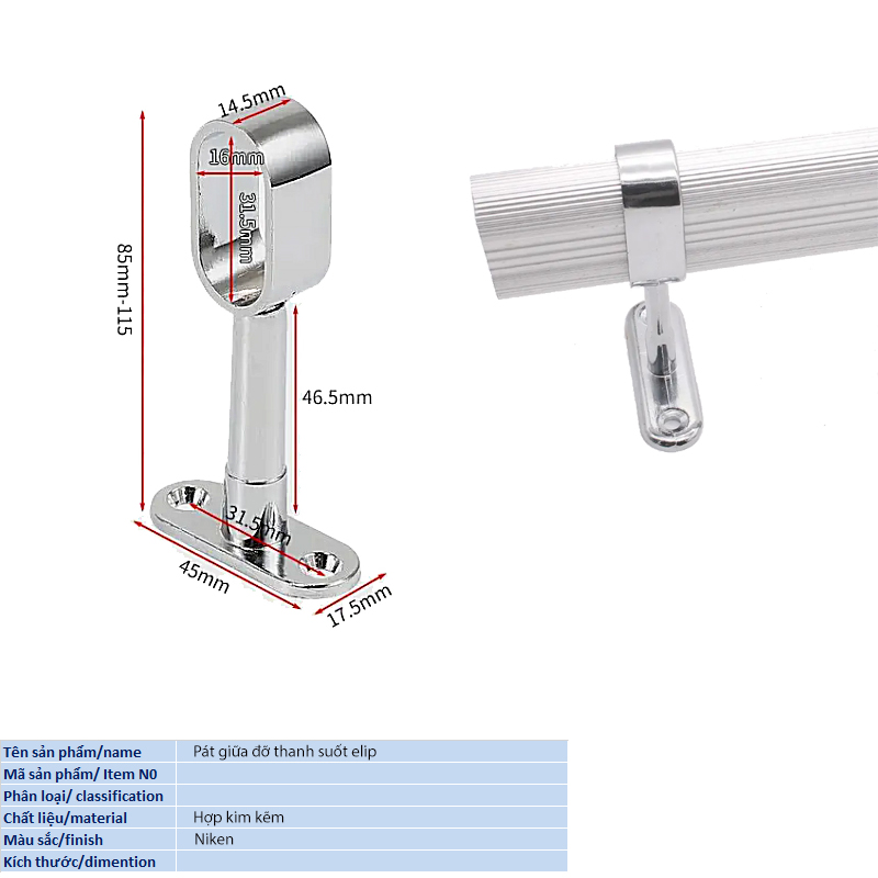 Chức năng chính: Đỡ và gia cố thanh suốt elip, tăng chỉnh linh hoạt theo chiều cao mong muốn