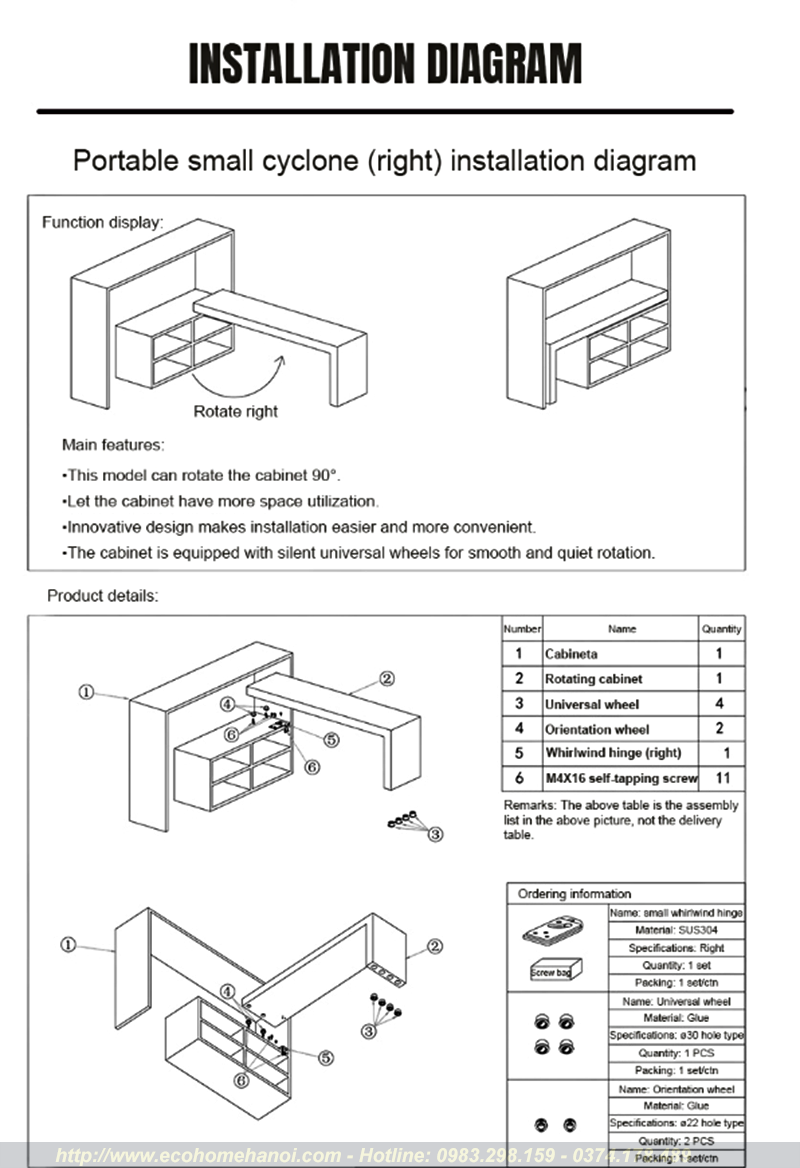 Bộ sản phẩm đi kèm hướng dẫn lắp đặt chi tiết, thao tác đơn giản, phù hợp cả với thợ thi công nội thất và người dùng DIY. -