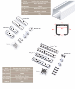 Ray U treo bánh xe trượt SD.5003.R được làm từ hợp kim nhôm chắc chắn, chiều dài 2m – 3m, độ dày 3mm, chịu tải trọng lên đến 150Kg/mét dài. Là giải pháp lý tưởng cho hệ cánh trượt treo như cửa đi, cửa phòng, vách ngăn, cánh trang trí với độ bền cao và vận hành êm ái. Bánh xe trượt 4 bánh SD.5003.4W bằng inox SUS 304, kích thước nhỏ gọn L70 x W25mm, chịu tải 60Kg. Thiết kế tinh gọn, phù hợp cho các cánh tủ trượt treo trọng lượng vừa, trượt êm nhẹ và dễ lắp đặt. Bánh xe trượt 8 bánh SD.5003.8W sử dụng inox SUS 304 cao cấp, kích thước 154 x 25mm, tải trọng 120Kg. Giải pháp lý tưởng cho cánh trượt có khối lượng lớn, di chuyển mượt mà, chịu lực cao, độ bền vượt trội. Bánh xe trượt 8 bánh SD.5003.8WG thiết kế chuyên dụng cho cánh kính, chất liệu inox chống gỉ, chịu tải 120Kg. Giải pháp lý tưởng cho các hệ cửa trượt kính trong nội thất hiện đại, đảm bảo an toàn và thẩm mỹ cao.