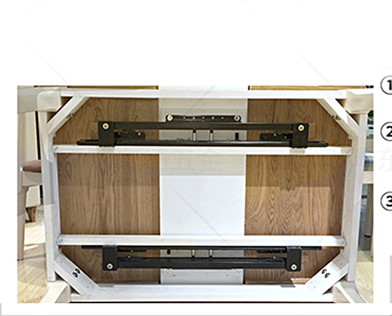 ✅ Cơ chế trượt nâng hạ thông minh: Phần giữa của bàn được nâng lên khi kéo dài bàn, và tự động hạ xuống khi thu ngắn – thao tác linh hoạt, tiện lợi.