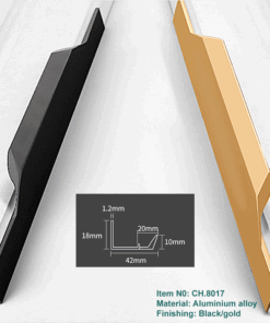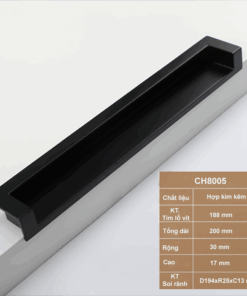CH.8005 là mẫu tay nắm âm hợp kim kẽm, thiết kế kẹp mép cánh tủ gọn nhẹ, mang lại hiệu quả cao trong việc tiết kiệm không gian và đảm bảo thẩm mỹ nội thất hiện đại. Khác với các loại tay nắm truyền thống, CH.8005 không nhô ra khỏi bề mặt cánh, rất phù hợp với các vị trí có diện tích hạn chế như tủ hẹp, lối đi nhỏ, tủ âm tường…