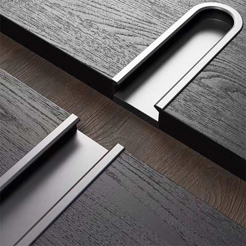 Thiết kế tay nắm chữ U là kiểu dáng được ứng dụng phổ biến trong các sản phẩm tay nắm âm nhờ cấu trúc dễ thao tác và phù hợp với nhiều phong cách nội thất. Phần rãnh được khoét lõm xuống vừa đủ để đặt ngón tay, giúp việc mở – đóng tủ trở nên đơn giản và thoải mái.