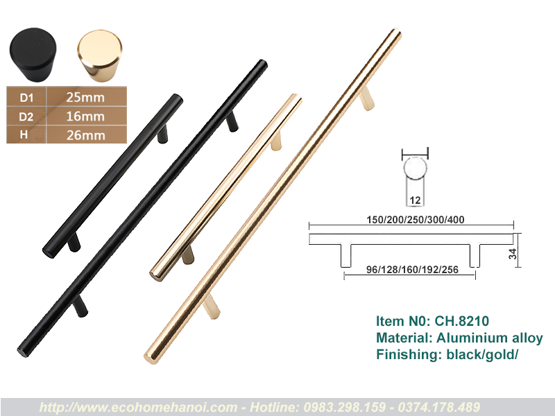 CH.8210 là mẫu tay nắm tủ dạng đũa thanh mảnh theo phong cách hiện đại, được thiết kế tối giản nhưng tinh tế, giúp tạo điểm nhấn nhẹ nhàng và sang trọng cho các loại cánh tủ bếp, tủ áo, tủ trang trí trong không gian nội thất.
