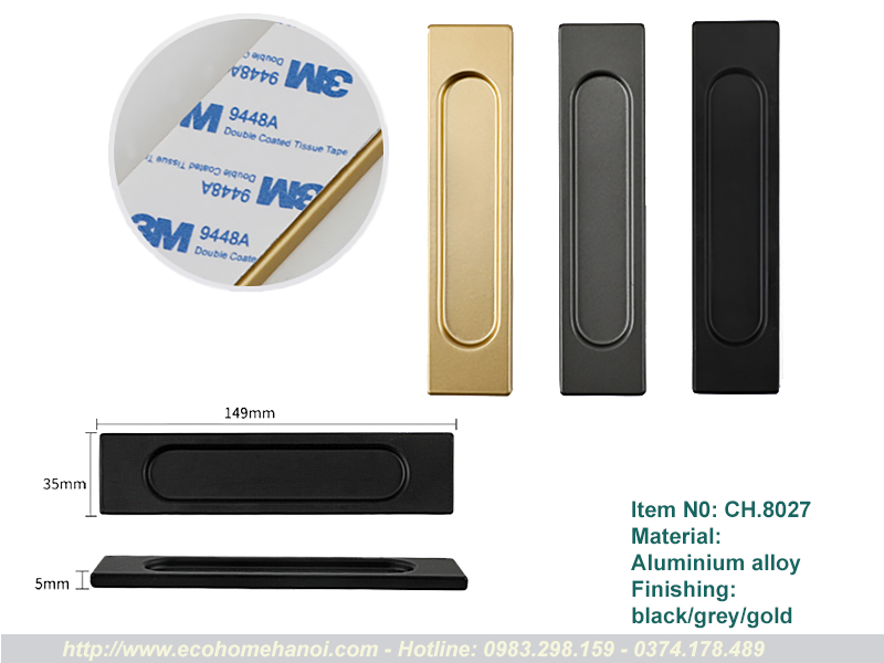 Tay nắm cửa lùa dính 3M hoặc bắt vít mã CH8027 ra đời để giải quyết triệt để vấn đề này. Không cần máy soi, không cần khoan kính, chỉ cần “Bóc và Dán”, bạn đã có ngay một chiếc tay nắm sang trọng, công năng hoàn hảo.