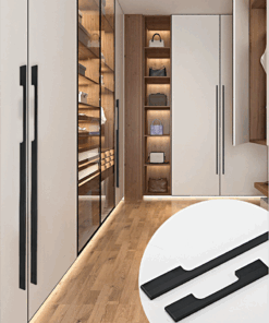 Phối hợp: Tuyệt vời cho phong cách Industrial hoặc Modern. Lắp tay nắm đen trên nền tủ màu trắng (tạo sự tương phản kinh điển) hoặc tủ màu gỗ sồi sáng (Oak) để tạo điểm nhấn khỏe khoắn.