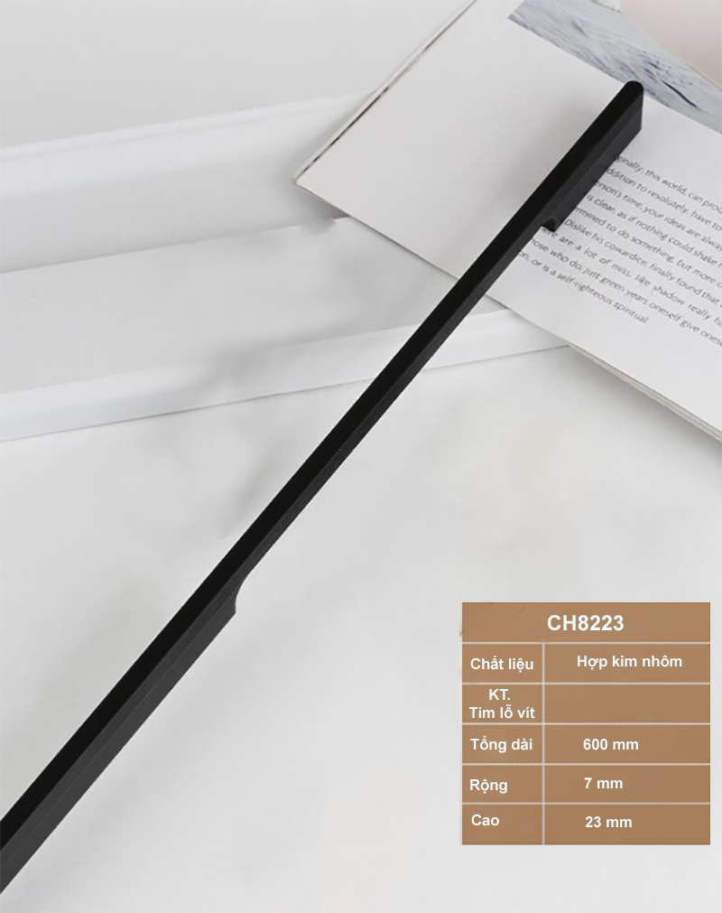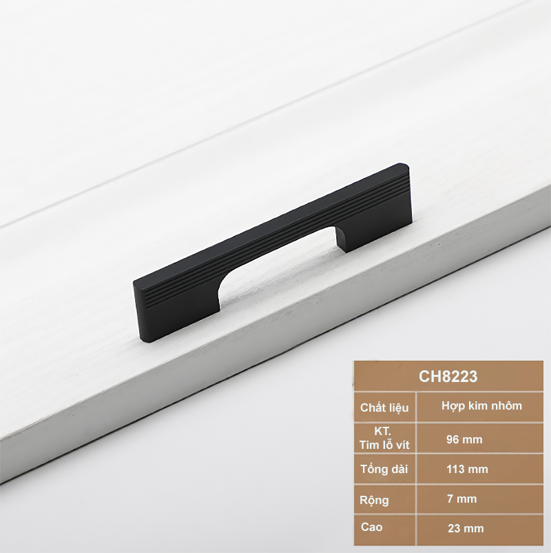 Tay nắm tủ CH8223 được chế tác từ dòng Hợp kim nhôm cao cấp (Aluminium Alloy), dòng vật liệu được ưa chuộng nhất trong ngành phụ kiện nội thất thế hệ mới.