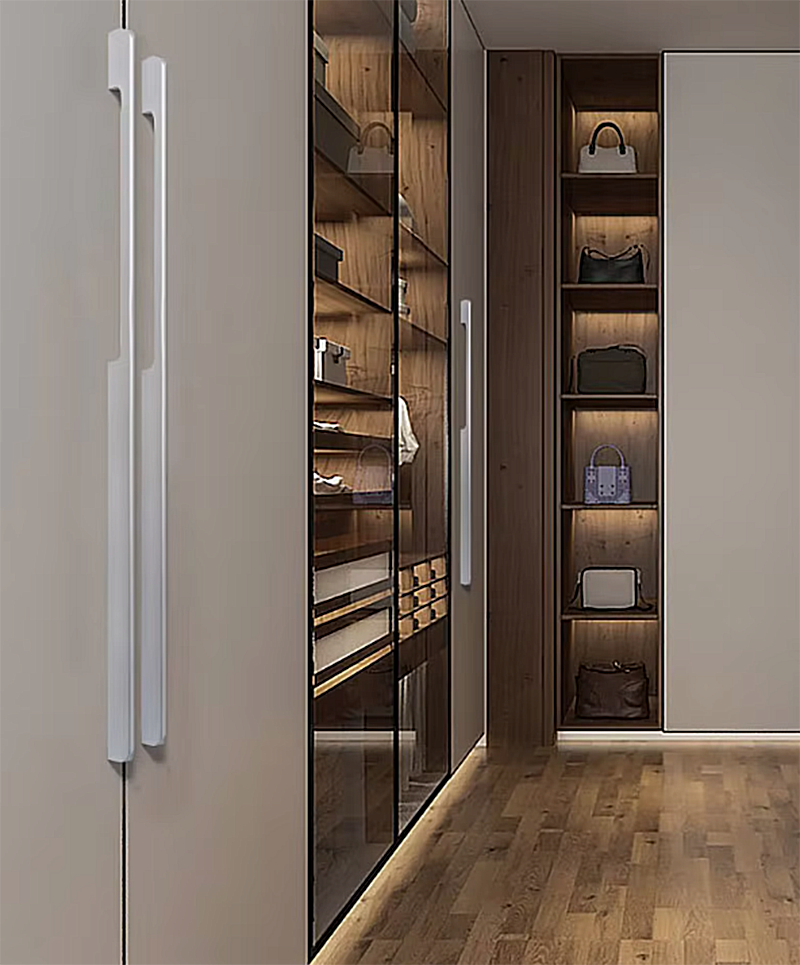 Xu hướng tủ quần áo hiện nay thường làm cao sát trần (2m6 – 2m8). Việc sử dụng những chiếc tay nắm ngắn cũn cỡn sẽ khiến cánh tủ trông mất cân đối.
