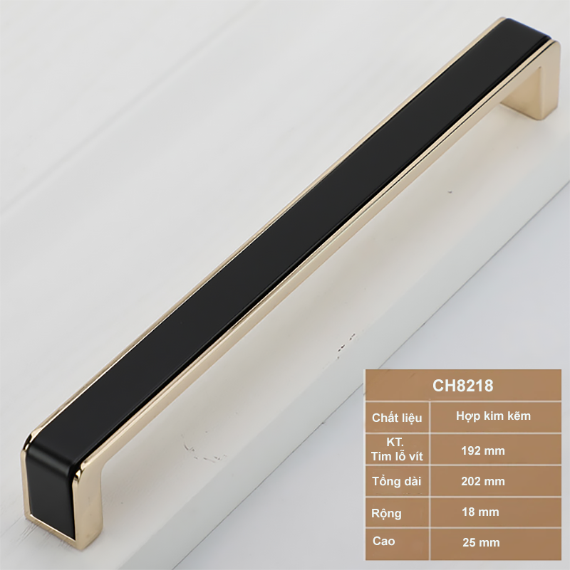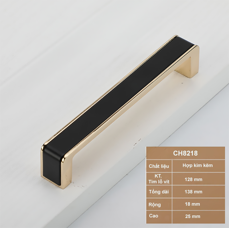 TAY NẮM TỦ HIỆN ĐẠI CH.8218 – MẠ VÀNG PVD/NICKEL, PHỐI ĐEN SANG TRỌNG