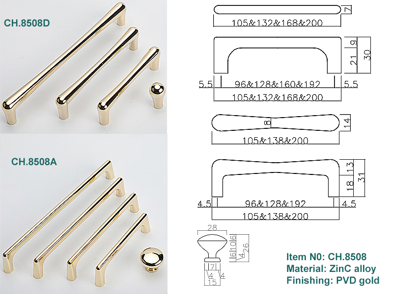 Tay nắm tủ cao cấp mạ PVD CH.8508 không chỉ là một phụ kiện nội thất, nó là một khoản đầu tư xứng đáng cho vẻ đẹp và sự tiện nghi của ngôi nhà. Với độ bền vượt thời gian nhờ công nghệ PVD và vẻ đẹp sang trọng của màu Vàng K, CH.8508 chắc chắn sẽ làm hài lòng những gia chủ khó tính nhất.