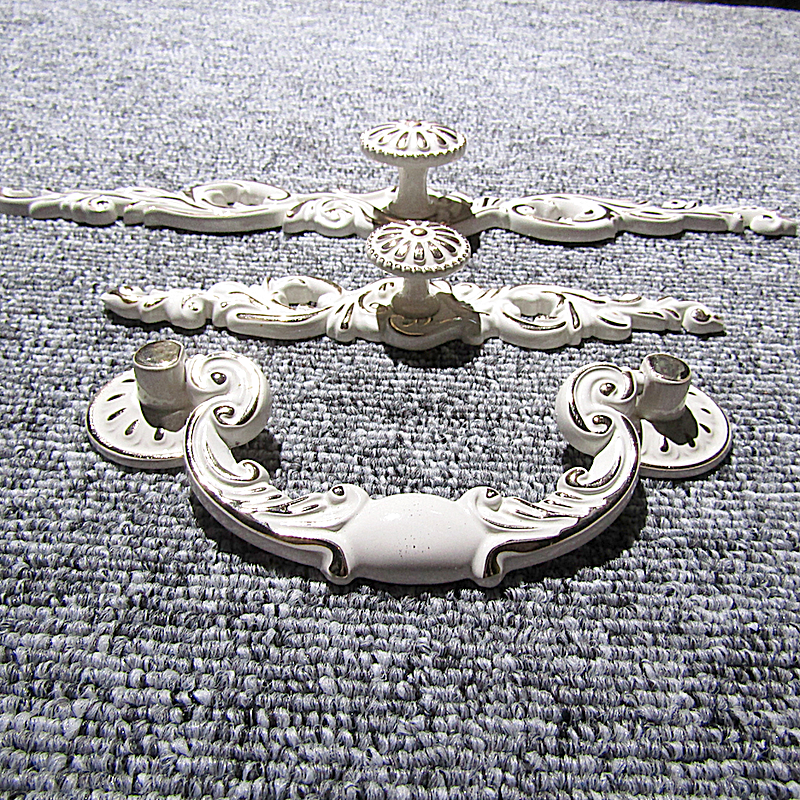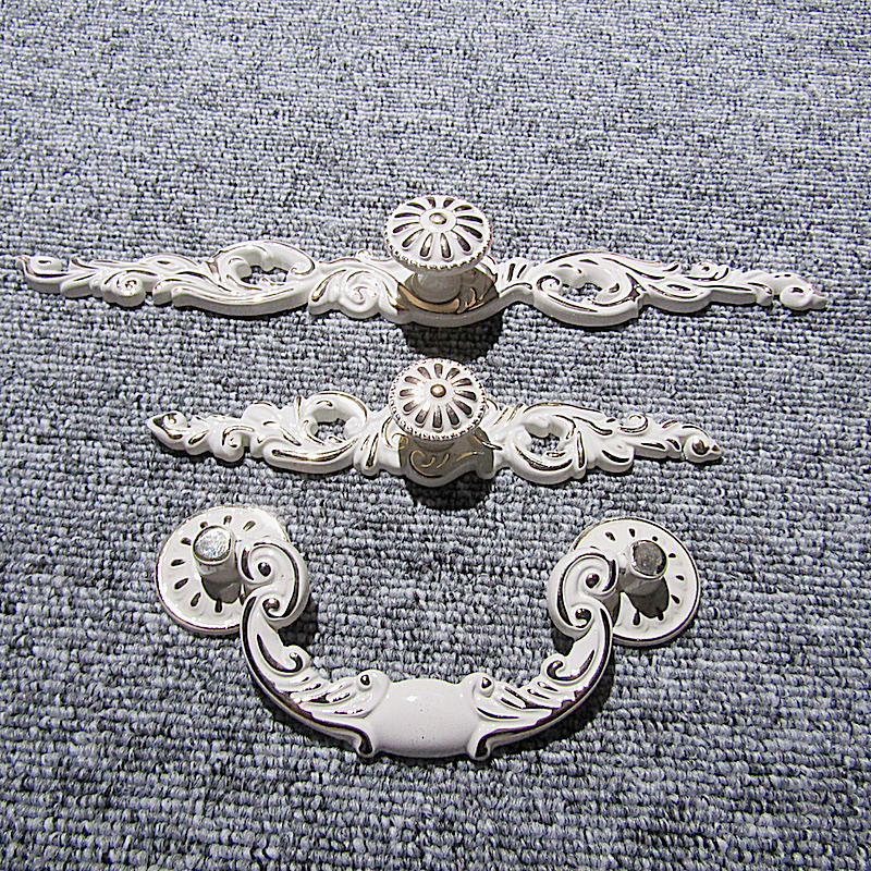 Viền vàng điểm xuyết: Các chi tiết viền, chân đế và hoa văn nổi được mạ màu vàng ánh kim (Gold). Đường viền vàng chạy dọc theo thân tay nắm như một nét vẽ nghệ thuật, làm nổi bật đường cong mềm mại của sản phẩm.