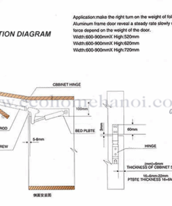 – Tay nâng cánh lật cơ chế piston ứng dụng nâng cánh lật đôi tủ bếp, kích thước cánh tối đa rộng 900mm, cao 720mm, trọng lượng 12kg.