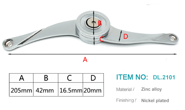 Tay chặn compa DL.2101 là một phụ kiện quan trọng trong các thiết kế cánh tủ lật, giúp đảm bảo cánh tủ mở ổn định và an toàn. Được làm từ hợp kim kẽm mạ nickel, sản phẩm này không chỉ bền bỉ, chắc chắn mà còn có khả năng chịu tải lớn, giúp cánh tủ hoạt động mượt mà trong suốt quá trình sử dụng.