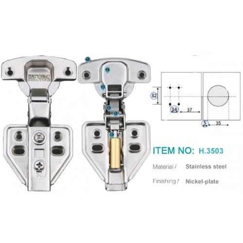 - Bản lề thủy lực góc mở 95 -110° , đường kính chén 35mm, tháo lắp thường.